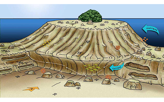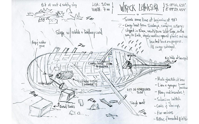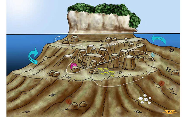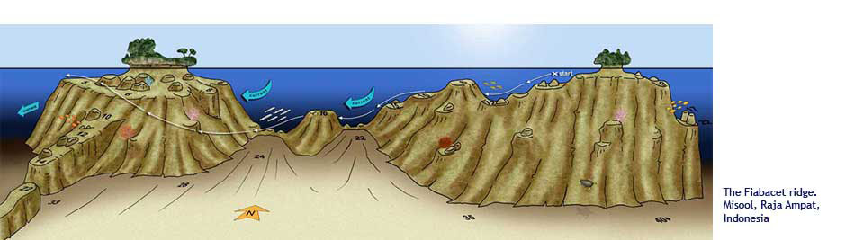 My father introduced me to topography at an early age, when he’d ask me to help him during his assignments taking measurements on the field. I soon developed a keen sense of space and proportion that led me to choose technical drawing for construction as my profession. When I changed career at age 29 to diving and boating, I realized I could represent the topography of underwater reefs using the same methods I employed for buildings and town plans. Consequently, I decided to map every divesite I visited and began constructing aerial views. With time, this eventually evolved into the 3D depictions I draw today. These reef representations have appeared in several publications, including my diving guides of South Egypt and Raja Ampat.